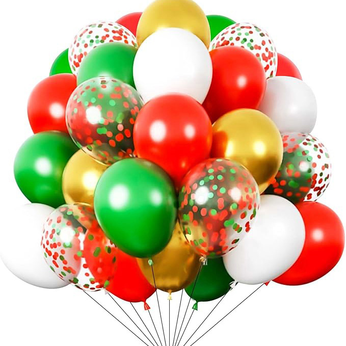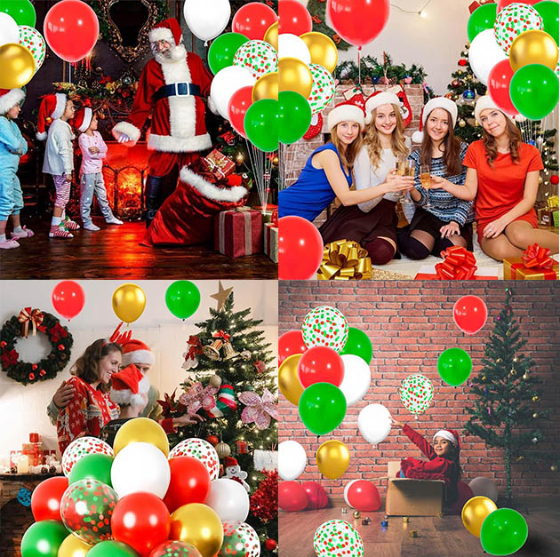 Niun®క్రిస్మస్ మిశ్రమ రంగు బెలూన్ సెట్ఆధారపడి ఉంటుంది12 ఇంచ్ లాటెక్స్ బెలూన్, మరియు క్రిస్మస్ దృశ్య చిహ్నాలు ఖచ్చితంగా చెక్కబడ్డాయి: