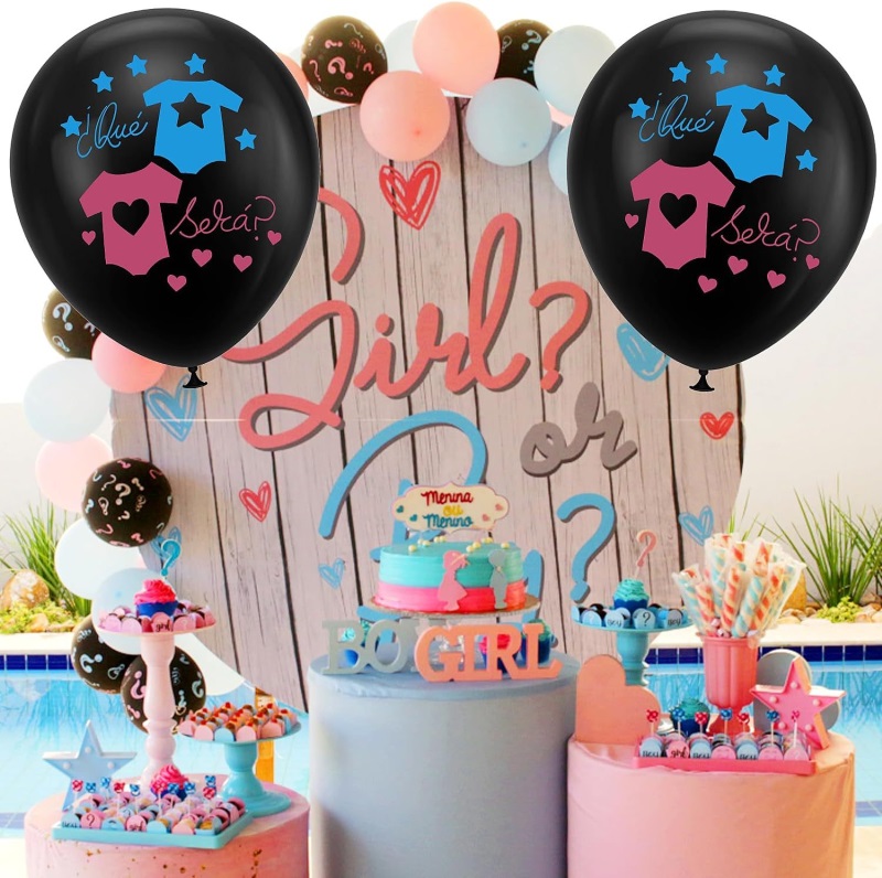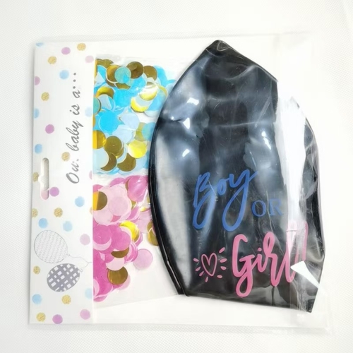 2. బెలూన్ రంగు మరియుపరిమాణం:జెండర్ రివీల్ బెలూన్ కోసం, సాధారణంగా నలుపు రంగును ఎంచుకోండి, కానీ మీకు ఇతర రంగులు కావాలంటే, అది కూడా సరే. బంగారు రంగు మరియు తెలుపు రంగు వలె. బెలూన్ రంగులతో పాటు, మీరు 12pcs బెలూన్, 36pcs బెలూన్లు, 48pcs బెలూన్లతో బెలూన్ సెట్ను తయారు చేయడం వంటి అందమైన బెలూన్ సెట్లో గులాబీ మరియు నీలం రంగులతో విభిన్న సైజు బెలూన్లను కూడా ఎంచుకోవచ్చు లేదా బెలూన్లను అందమైన బెలూన్ ఆర్చ్ గార్లాండ్ సెట్గా తయారు చేయవచ్చు. మీరు హారానికి కొన్ని సంబంధిత రేకు బెలూన్లు మరియు 36 అంగుళాల పెద్ద ప్రింటింగ్ బెలూన్లను జోడించవచ్చు, అప్పుడు మొత్తం సెట్ మరింత అద్భుతంగా ఉంటుంది.