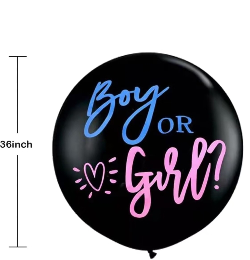 కోసం36 అంగుళాల లింగాన్ని బహిర్గతం చేసే బెలూన్స్టాక్లో, ఇది మాట్ బ్లాక్ కలర్ మరియు అబ్బాయి లేదా అమ్మాయి, అబ్బాయి మరియు అమ్మాయి క్యారెక్టర్ పిక్చర్ లేదా అబ్బాయి మరియు అమ్మాయికి సంబంధించిన ఏదైనా ఇతర స్టైల్స్ ప్రింటింగ్ను కలిగి ఉంటుంది. కాన్ఫెట్టీ కోసం, ఒక బ్యాగ్ పింక్ పేపర్ కాన్ఫెట్టితో పాటు రేకు గోల్డ్ కలర్ కన్ఫెట్టి, మరొక బ్యాగ్ రేకు గోల్డ్ కలర్ కన్ఫెట్టితో బ్లూ పేపర్ కన్ఫెట్టి.