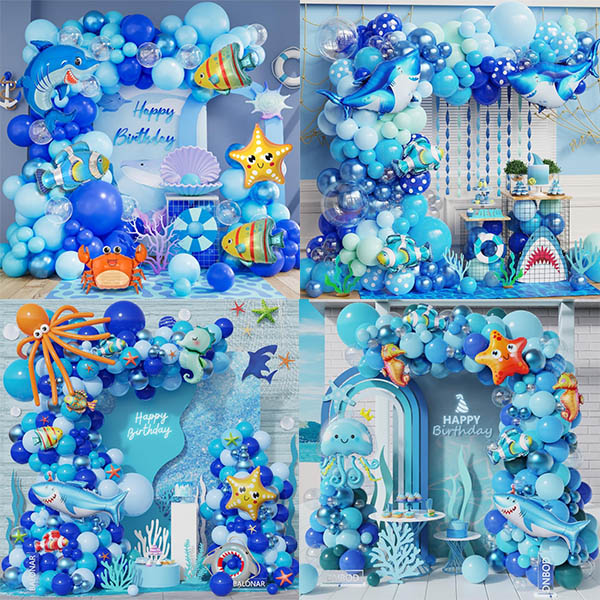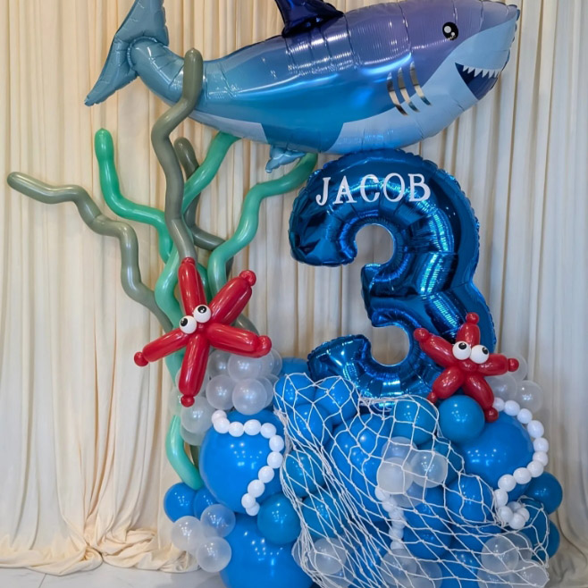 2. రేకు బెలూన్:షార్క్ రేకు బెలూన్లతో బెలూన్ గార్లాండ్, ఈ ప్యాకేజీలో షార్క్స్, స్టార్ ఫిష్, జెల్లీ ఫిష్ మరియు సీహోర్సెస్ వంటి వివిధ కార్టూన్ సముద్ర జీవులతో రేకు బెలూన్లు ఉన్నాయి. అదనంగా, షార్క్ రేకు బెలూన్లతో ప్రత్యేకమైన బెలూన్ దండను సృష్టించడానికి మీ నమూనా ప్రకారం మేము మీ కోసం కస్టమ్ రేకు బెలూన్లను కూడా రూపొందించవచ్చు.