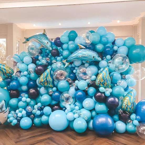 1. నీటి అడుగున ప్రపంచం కలలు కనే రంగులతో నిండి ఉంది. వేడి వాతావరణంలో, షార్క్ రేకు బెలూన్లతో బెలూన్ గార్లాండ్ కిట్ చల్లదనం యొక్క స్పర్శను కలిగిస్తుంది, ఇది ప్రజలు రిలాక్స్డ్ మరియు సంతోషంగా అనిపిస్తుంది. కార్టూన్ మెరైన్ లైఫ్ రేకు బెలూన్ల కలయిక పిల్లలతో బాగా ప్రాచుర్యం పొందింది. ఇది పుట్టినరోజు పార్టీలు లేదా బహిరంగ కార్యకలాపాల కోసం అయినా, అలంకరణ కోసం షార్క్ రేకు బెలూన్లతో బెలూన్ ఆర్చ్ గార్లాండ్ను ఉపయోగించడం గొప్ప ఎంపిక.
