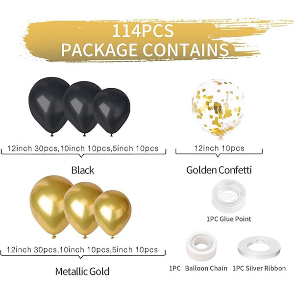 1. ఒక సెట్ కోసం నలుపు మరియు బంగారు బెలూన్ ఆర్చ్ కిట్ల ఉచిత నమూనాలు
