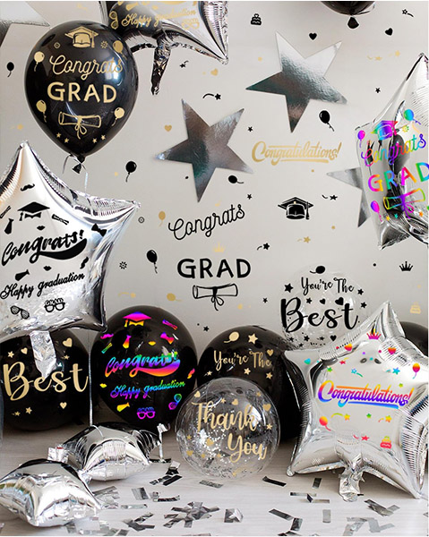 మా "హ్యాపీ గ్రాడ్యుయేషన్" బెలూన్ స్టిక్కర్లు గ్రాడ్యుయేషన్ పార్టీల ఆనందకరమైన వాతావరణాన్ని మెరుగుపరచడానికి రూపొందించబడ్డాయి. ప్రతి స్టిక్కర్ ఒక ఉత్సవ పదబంధాన్ని లేదా డిజైన్ను కలిగి ఉంటుంది, అది సాధించిన స్ఫూర్తిని ప్రతిధ్వనిస్తుంది. ప్రత్యేకమైన అలంకరణలను సృష్టించడానికి మరియు కుటుంబం మరియు స్నేహితులతో మరపురాని ఫోటోలు మరియు ముఖ్యమైన క్షణాలను క్యాప్చర్ చేయడానికి ఈ స్టిక్కర్లను ఉపయోగించండి.