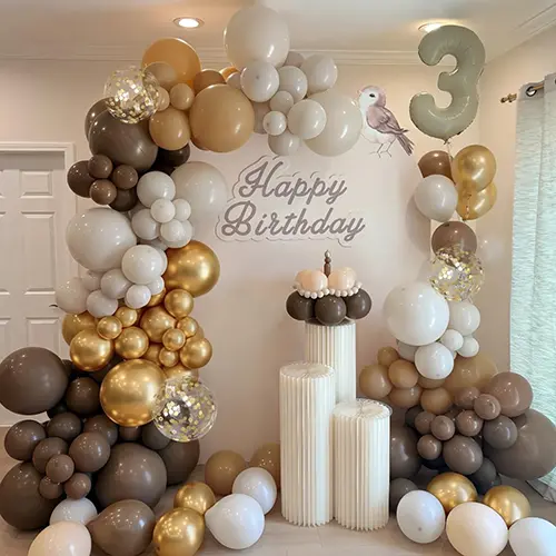 · ఉపయోగాలు & ప్రయోజనాలు: ఆర్చ్లోని ఖాళీలను పూరించడానికి లేదా వేలాడే ఆభరణాలను రూపొందించడానికి ఉపయోగిస్తారు, ఇది మొత్తం నిర్మాణాన్ని పూర్తి మరియు మరింత త్రిమితీయంగా చేస్తుంది. ఒంటె రంగు బెలూన్ ఆర్చ్ ప్యాకేజీ యొక్క గొప్పతనాన్ని మరియు గ్రహించిన విలువను మెరుగుపరచడానికి కీలకమైన అనుబంధం.