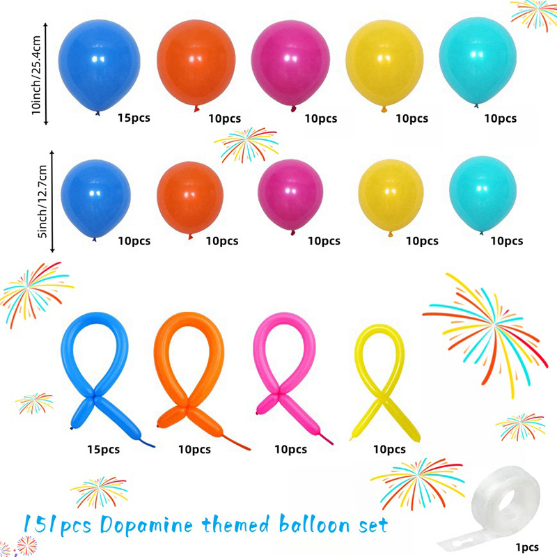 మొత్తం 151pcs డోపమైన్ నేపథ్య రంగుల బెలూన్ ఆర్చ్ కిట్లు.