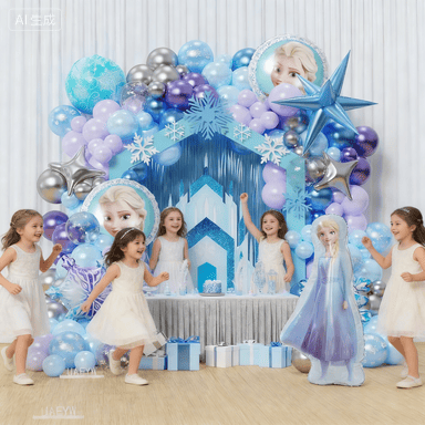 డిస్నీ స్టైల్ ప్రోడక్ట్గా సెట్ చేయబడిన ఘనీభవించిన నేపథ్య బెలూన్ ఆర్చ్, ప్రపంచంలోని పిల్లలు మరియు పెద్దలు ఇష్టపడతారు.
