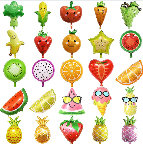 పుట్టినరోజు పార్టీలు, వార్షికోత్సవ అలంకరణలు, వివాహ అలంకరణలు, కాస్ప్లే పార్టీలు, బేబీ పార్టీ జంటలు, అమ్మాయి పార్టీలు మరియు పండు పార్టీ అలంకరణలకు పండ్లు మరియు కూరగాయల బెలూన్లు సరైనవి! ఈ బుడగలు అలంకరణ కోసం మాత్రమే కాకుండా, అందమైన ఫోటో ప్రాప్లుగా కూడా ఉపయోగపడతాయి. మీరు ఈ పండ్లు మరియు కూరగాయల బెలూన్లతో పుట్టినరోజు అమ్మాయిల అందమైన చిత్రాలను తీయవచ్చని ఊహించుకోండి. ఈ ఛాయాచిత్రాల జ్ఞాపకం రాబోయే సంవత్సరాల్లో ప్రతిష్టాత్మకంగా ఉంటుంది. పండ్లు మరియు కూరగాయలు రేకు బెలూన్ సాధారణంగా అల్యూమినియం ఫిల్మ్తో తయారు చేయబడుతుంది, ఇది సాధారణ రబ్బరు పాలు బెలూన్ల కంటే బలంగా ఉంటుంది, విచ్ఛిన్నం చేయడం సులభం కాదు మరియు మంచి గాలి నిలుపుదల లక్షణాలను కలిగి ఉంటుంది మరియు ఎక్కువ కాలం పాటు పెంచబడిన స్థితిని నిర్వహించగలదు. గుండ్రని పుచ్చకాయ, స్ట్రాబెర్రీ, వంగిన అరటి, ఓవల్ నారింజ, కివి పండు, క్యారెట్, మొక్కజొన్న, బ్రోకలీ మరియు ఇతర కూరగాయల ఆకారాలు వంటి వివిధ రకాల పండ్లు మరియు కూరగాయలు ఉన్నాయి.