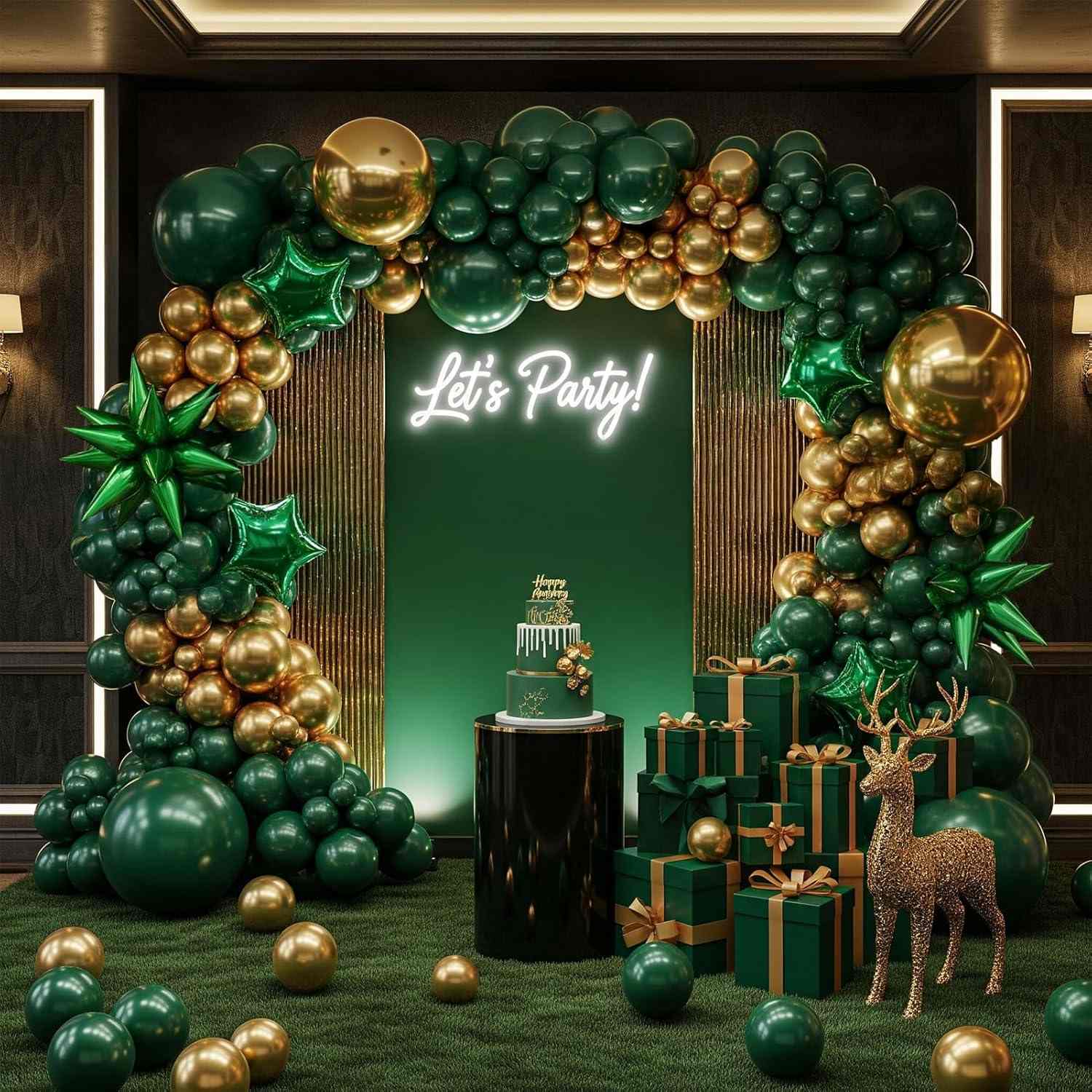 3.గ్రీన్ అండ్ గోల్డ్ బర్త్ డే బెలూన్ ఆర్చ్