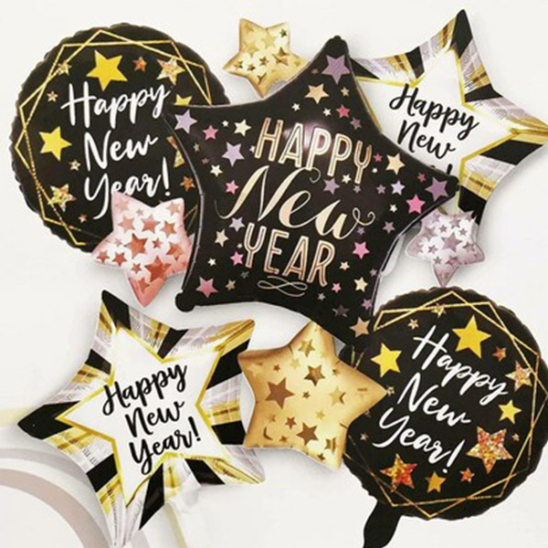 హ్యాపీ న్యూ ఇయర్ ఫాయిల్ బెలూన్లు స్టార్ ఆకారంలో, గుండ్రని అల్యూమినియం ఫాయిల్ బెలూన్లను కలిగి ఉంటాయి. వారి ప్రత్యేకమైన డిజైన్ మరియు ఆరాధనీయమైన ప్రదర్శన మీ పార్టీని మరింత ఆహ్లాదకరంగా చేస్తుంది మరియు చిరస్మరణీయమైన మరియు ఆకట్టుకునే నూతన సంవత్సర అలంకరణ అనుభవాన్ని సృష్టిస్తుంది. అధిక-నాణ్యత అల్యూమినియం రేకుతో తయారు చేయబడిన ఈ బెలూన్లు మన్నికైనవి, లీక్-రెసిస్టెంట్ మరియు ఎక్కువ కాలం నిండుగా ఉంటాయి. వారు గాలి లేదా హీలియంతో పెంచి, పూర్తి, త్రిమితీయ ఆకారాన్ని నిర్వహిస్తారు. అవి ఇండోర్ మరియు అవుట్డోర్ అలంకరణలకు సరైనవి. మేము కస్టమైజ్ చేసిన న్యూ ఇయర్ ఫాయిల్ బెలూన్లను కూడా అందిస్తాము, మీ అన్ని అవసరాలకు అనుగుణంగా వాటిని మీ స్టైల్కు అనుగుణంగా మార్చుకోవడానికి మిమ్మల్ని అనుమతిస్తుంది.