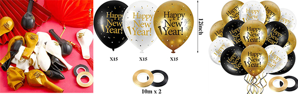 నూతన సంవత్సర నేపథ్య రబ్బరు బంతులు "హ్యాపీ న్యూ ఇయర్" లేదా నలుపు, బంగారం మరియు వెండి వంటి పండుగ రంగుల వంటి నూతన సంవత్సర డిజైన్లను కలిగి ఉండే సెట్లలో లభించే అలంకార బెలూన్లు. అవి పార్టీలకు సరైనవి మరియు బెలూన్ తోరణాలు, పుష్పగుచ్ఛాలు లేదా పైకప్పు నుండి వేలాడదీయడానికి ఉపయోగించవచ్చు. బోరన్ బెలూన్ ఫ్యాక్టరీ అందించే అన్ని న్యూ ఇయర్-థీమ్ లేటెక్స్ బాల్స్ పూర్తిగా రబ్బరు పాలుతో తయారు చేయబడ్డాయి మరియు హ్యాపీ న్యూ పార్టీ లాటెక్స్ బెలూన్స్ CE ధృవీకరణకు అనుగుణంగా ఉంటాయి. నియున్ బ్రాండ్ ఈ నూతన సంవత్సర నేపథ్య రబ్బరు బలూన్ల హోల్సేల్ అమ్మకాలకు మద్దతు ఇస్తుంది. ఈ హ్యాపీ న్యూ ఇయర్ లేటెక్స్ బంతులు ఆచరణాత్మకంగా మరియు సౌందర్యపరంగా ఆహ్లాదకరంగా ఉంటాయి, ఇవి ఖర్చుతో కూడుకున్నవి మరియు సృజనాత్మక డిజైన్ను అందిస్తాయి. వారు తక్షణమే పండుగ వాతావరణాన్ని పెంచుతారు మరియు ఏదైనా వేడుకకు వెచ్చదనం మరియు ఆనందాన్ని తెస్తారు.