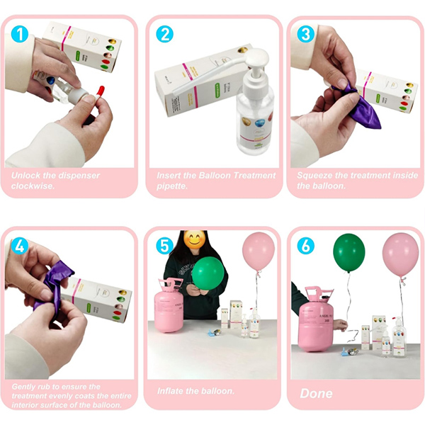 3. బెలూన్ షార్టర్ లోపల గ్లూ ఫిల్మ్ యొక్క గ్లూ ఫిల్మ్ యొక్క సమయాన్ని సమర్థవంతంగా నిర్ధారించడానికి అప్గ్రేడ్ ఫార్ములాను ఉపయోగించండి. హీలియం బెలూన్ల తేలియాడే సమయాన్ని వెచ్చని మరియు తేమతో కూడిన వాతావరణంలో పొడిగించడానికి ఇది ప్రత్యేకంగా రూపొందించబడింది.