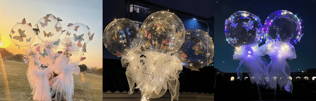 బోబో బెలూన్ పారదర్శకంగా మరియు సరళమైనది, ఇది బోలు సీతాకోకచిలుక స్టిక్కర్ యొక్క కాంతి-ప్రసారం వశ్యతతో చాలా స్థిరంగా ఉంటుంది. స్టిక్కర్ యొక్క ప్రధాన ఉపయోగం ఏమిటంటే, మార్పులేని బెలూన్ను సీతాకోకచిలుక డ్యాన్స్ సస్పెన్షన్ బంతికి అప్గ్రేడ్ చేయడం, మరియు బటర్ఫ్లై యొక్క త్రిమితీయ ఆకారం మరియు కాంతి మరియు నీడ ప్రభావం ద్వారా బెలూన్ను సన్నివేశం యొక్క దృష్టిని మార్చడం. పిల్లల పుట్టినరోజు పార్టీ, వయోజన పుట్టినరోజు పార్టీ, వివాహ స్వాగత ప్రాంతం, షాపింగ్ మాల్ కార్యకలాపాలు, హాలిడే హోమ్ డెకరేషన్ చాలా అనుకూలంగా ఉంటాయి. రాత్రి సమయంలో, దీనిని LED లైట్లతో కూడా సరిపోల్చవచ్చు, ఇది చాలా ఆకర్షించేది.