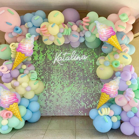నియున్ బెలూన్ ఫ్యాక్టరీ ఉచిత బెలూన్ గార్లాండ్ ఆర్చ్ అనుకూలీకరణ సేవను అందిస్తుంది. మీ లోగో మరియు పిక్చర్ డిజైన్ కాన్సెప్ట్ను మాకు చెప్పండి మరియు మేము మీకు చెందిన మాకరూన్ ఐస్ క్రీమ్ బెలూన్ ఆర్చ్ గార్లాండ్ ప్యాకేజీని సృష్టిస్తాము. మా ప్రొఫెషనల్ డిజైన్ బృందం దీన్ని ఆప్టిమైజ్ చేస్తుంది మరియు కస్టమర్ సంతృప్తి చెందే వరకు ఉత్పత్తిని ప్రారంభిస్తుంది.