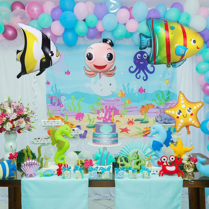ఓషన్ సిరీస్ రేకు బెలూన్లు వివిధ రంగులు మరియు జంతు రకాల్లో అందుబాటులో ఉన్నాయి. నాటికల్ థీమ్ పార్టీలు, బేబీ పార్టీలు, పుట్టినరోజులు, వివాహాలు, వేడుకలు, గ్రాడ్యుయేషన్లు, ఉష్ణమండల హవాయి సమ్మర్ పార్టీలు, ఎంగేజ్మెంట్ పార్టీలు, వార్షికోత్సవాలు, నాటికల్ థీమ్ పార్టీలు మొదలైనవాటికి ఓషన్ థీమ్ ఫాయిల్ బెలూన్లను ఉపయోగించవచ్చు. ప్రకాశవంతమైన రంగులు మరియు అందమైన నమూనాలు సంతోషకరమైన వాతావరణాన్ని సృష్టించగలవు, పిల్లల కళ్లను ఆకర్షిస్తాయి మరియు పార్టీని మరింత ఆనందదాయకంగా మారుస్తాయి. ఈ అందమైన మరియు మనోహరమైన మెరైన్ లైఫ్ ఫాయిల్ బెలూన్ పుట్టినరోజు పార్టీలకు లేదా ఫోటో సపోర్ట్గా ఉపయోగించడానికి చాలా బాగుంది. వారు నిజంగా మీకు మరింత వినోదాన్ని అందించగలరు.