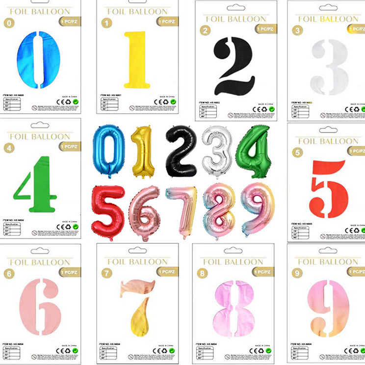 సంఖ్య రేకు బెలూన్లు: 16 ", 32" మరియు 40 "పరిమాణాలలో లభిస్తుంది.