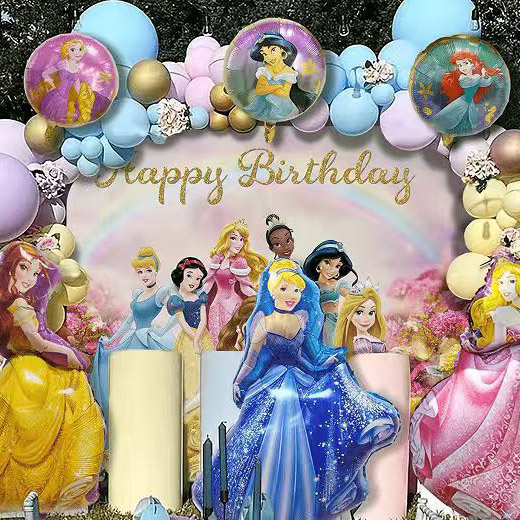 బెలూన్ కిట్ ప్రిన్సెస్-నేపథ్య రబ్బరు బుడగలు మరియు రేకు బెలూన్లను అనుసంధానిస్తుంది. ఇది రబ్బరు బెలూన్ సెట్ యొక్క సులభమైన అమరిక లక్షణాలను కలిగి ఉండటమే కాకుండా, రేకు బెలూన్ సెట్ యొక్క త్రిమితీయ అలంకరణ ప్రభావాన్ని కూడా మిళితం చేస్తుంది. అదే సమయంలో, బ్యాక్డ్రాప్ మరియు టేబుల్క్లాత్ వంటి అలంకరణలతో, ఇండోర్ బర్త్డే పార్టీలు మరియు అవుట్డోర్ ప్రాంగణ కార్యకలాపాలు రెండూ సరళత నుండి శుద్ధీకరణ వరకు బహుళ-స్థాయి అలంకార ప్రభావాలను అనుకూలమైన కొలోకేషన్ ద్వారా సాధించగలవు, ప్రత్యేకించి వ్యక్తిగతీకరించిన లేఅవుట్ను అనుసరించే మరియు సమయాన్ని ఆదా చేసుకోవాలనుకునే వినియోగదారులకు అనుకూలంగా ఉంటుంది.