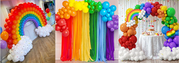 NuN బ్రహ్మాండమైనదిరెయిన్బో-నేపథ్య పార్టీ అలంకరణలు మీ పార్టీకి రంగుల స్పర్శను జోడించి, రెయిన్బో బెలూన్ల యొక్క ఏడు శక్తివంతమైన రంగులను కలిగి ఉంటాయి. మీ రెయిన్బో నేపథ్య పార్టీ కోసం శక్తివంతమైన రెయిన్బో బెలూన్ ఆర్చ్, బ్యాక్డ్రాప్, సెంటర్పీస్ మరియు ప్రవేశ మార్గాన్ని సృష్టించడానికి ఈ రెయిన్బో బెలూన్ ఆర్చ్ కిట్ని ఉపయోగించండి.