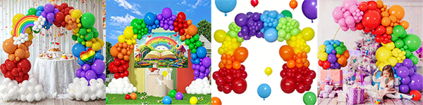 మాట్ రెయిన్బో-రంగు బెలూన్లు ప్రధానంగా ఎరుపు, నారింజ, పసుపు, ఆకుపచ్చ, మణి మరియు నీలం. ఈ ప్రకాశవంతమైన మరియు బహుముఖ రంగులు ఏదైనా నిస్తేజంగా ఉండేలా చేస్తాయి.
