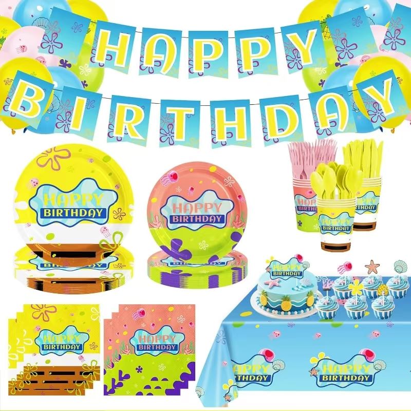 పిల్లల పార్టీ వస్తువులలో, స్పాంజ్బాబ్ టేబుల్వేర్ సెట్ ఒక ఆహ్లాదకరమైన మరియు ఉపయోగకరమైన ఎంపిక. ఇది స్పాంజ్బాబ్ మరియు పాట్రిక్ వంటి ప్రసిద్ధ పాత్రలను ప్రధాన రూపకల్పనగా కలిగి ఉంది. ఈ సెట్ ప్లేట్లు, పేపర్ కప్పులు, న్యాప్కిన్లు మరియు పాత్రలతో వస్తుంది. ప్లేట్లు స్పాంజ్బాబ్ను పెద్ద చిరునవ్వుతో మరియు పాట్రిక్ ఫన్నీ ముఖంతో చూపిస్తాయి. ఈ డిజైన్ సముద్ర శైలిని తీసుకురావడానికి జెల్లీ ఫిష్, సీవీడ్ మరియు షెల్స్ను జోడిస్తుంది. రంగులు ప్రకాశవంతమైనవి మరియు పొరలతో సమృద్ధిగా ఉంటాయి. పేపర్ కప్పులు మరియు న్యాప్కిన్లు అదే థీమ్ను అనుసరిస్తాయి. మొత్తం పట్టిక సముద్రపు సరదాగా కనిపిస్తుంది. టేబుల్వేర్ సురక్షితమైన మరియు పర్యావరణ పదార్థాలను ఉపయోగిస్తుంది. ఇది అందమైన శైలిని ఉంచుతుంది మరియు కూడా ఉపయోగపడుతుంది. ఇది పుట్టినరోజు పార్టీలు, నేపథ్య సంఘటనలు లేదా కుటుంబ భోజనానికి సరిపోతుంది. ఈ సెట్ పిల్లల కోసం “బికినీ బాటమ్ విందు” ను సంతోషపరుస్తుంది మరియు తల్లిదండ్రులకు సులభమైన మరియు అధిక-నాణ్యత గల పార్టీ ఎంపికను ఇస్తుంది.