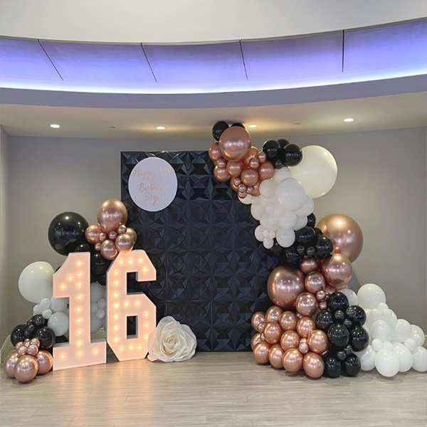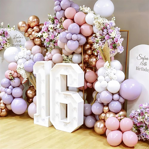 16 లెడ్ లైట్తో బెలూన్ దండ:మా ఫ్యాక్టరీ 16 ఏళ్ల లెడ్ లైట్తో కూడిన బెలూన్ దండను కూడా ప్రారంభించింది. LED నంబర్ లైట్లు ప్రకాశవంతమైన మరియు శాశ్వత లైటింగ్ ప్రభావాలను అందించడానికి పర్యావరణ అనుకూల పదార్థాల ABS మరియు LED లతో తయారు చేయబడ్డాయి. చీకటిలో మెరుస్తున్న అంకెలు మరియు అక్షరాలతో LED లైట్లు. మృదువైన లైటింగ్ రిలాక్స్డ్ మరియు సౌకర్యవంతమైన వాతావరణాన్ని సృష్టిస్తుంది మరియు ఏదైనా గదికి ప్రత్యేకమైన మనోజ్ఞతను జోడిస్తుంది. వాటిని స్వతంత్రంగా ప్రదర్శించవచ్చు లేదా గోడపై, మాంటెల్పై వేలాడదీయవచ్చు లేదా ఈవెంట్లు లేదా వేడుకల సమయంలో ఉపయోగం కోసం రిసెప్షన్ ప్రాంతంలో ఉంచవచ్చు. లీనమయ్యే పార్టీ వాతావరణాన్ని సృష్టించేందుకు అనువైన బెలూన్ గార్లాండ్ ఆర్చ్లతో కూడిన LED నంబర్ లైట్లు, మీ 16వ పుట్టినరోజుకు మరపురాని వేడుకను జోడించి, ప్రత్యేకమైన మరియు మరపురాని ఫోటోలను తీయడానికి అవసరమైన ఆసరా.