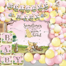 విన్నీ ది ఫూ బెలూన్ ఆర్చ్ గార్లాండ్ కిట్ అనేది వివిధ స్టైల్స్ మరియు రిచ్ కలర్స్తో మా ఫ్యాక్టరీ యొక్క హాట్-సెల్లింగ్ ప్రోడక్ట్. ఈ కిట్ ప్రధానంగా విన్నీ ది ఫూ లాటెక్స్ బెలూన్ యొక్క వివిధ పరిమాణాలతో రూపొందించబడింది. మా బెలూన్లు సహజ రబ్బరు మరియు అధిక నాణ్యత గల అల్యూమినియం రేకు పదార్థాలతో తయారు చేయబడ్డాయి మరియు కఠినమైన భద్రతా పరీక్షలలో ఉత్తీర్ణత సాధించాయి, పర్యావరణ అనుకూలమైనవి మరియు విషపూరితం కానివి, కాబట్టి మీరు వాటిని నమ్మకంగా ఉపయోగించవచ్చు. మాకు సరిపోయే బేర్ టేబుల్వేర్, బ్యాక్గ్రౌండ్ క్లాత్, బెలూన్ బాక్స్లు మొదలైనవి కూడా ఉన్నాయి, ఇవి ఆకుపచ్చ మరియు పర్యావరణ అనుకూలమైన ముడి పదార్థాలతో కూడా తయారు చేయబడ్డాయి. బ్యాక్గ్రౌండ్ క్లాత్ ఫోటో బూత్ లేదా డెజర్ట్ టేబుల్కి గ్లామరస్ బ్యాక్డ్రాప్గా పనిచేస్తుంది, అయితే అలంకార పేపర్ బాక్స్ బహుమతి ప్రదర్శన లేదా చిన్న పార్టీ బహుమతికి ఆకర్షణీయమైన టచ్ను జోడిస్తుంది. విన్నీ ది ఫూ బెలూన్ ఆర్చ్ గార్లాండ్ కిట్ పుట్టినరోజులు, లింగం వెల్లడి, వివాహాలు, శిశువు నామకరణం, వార్షికోత్సవాలు మరియు ఇతర నేపథ్య పార్టీలకు సరైనది. ఇది స్నేహితుల కలయిక అయినా లేదా కుటుంబ సమావేశమైనా, అది మీకు మరియు మీ స్నేహితులకు మరపురాని అనుభూతిని అందిస్తుంది.